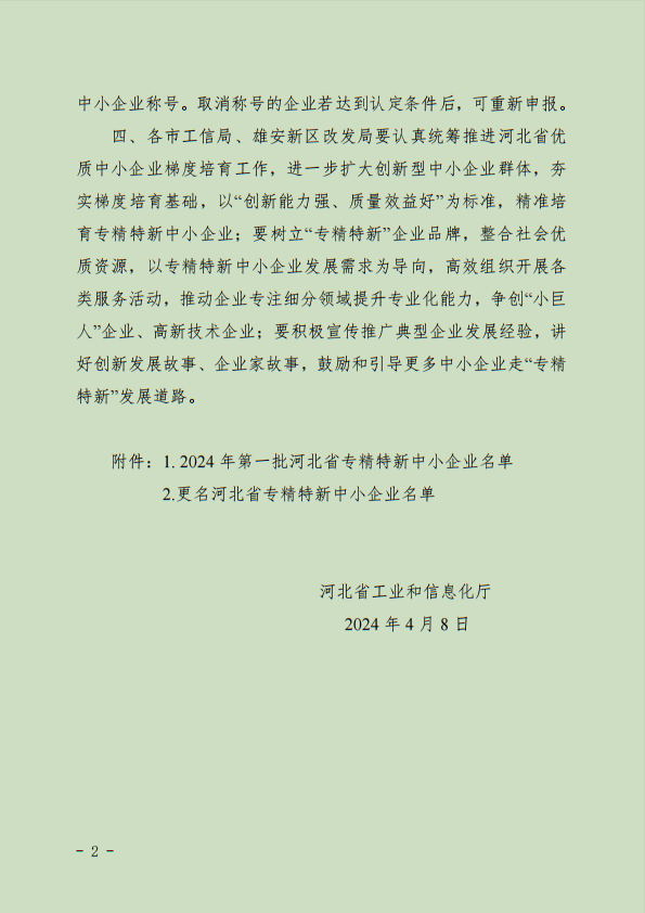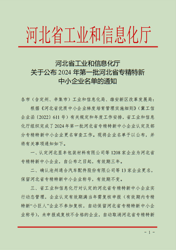 近日,中繹集團(tuán)榮獲河北省工業(yè)和信息化廳授予的“河北省專精特新中小企業(yè)”榮譽(yù)稱號。
